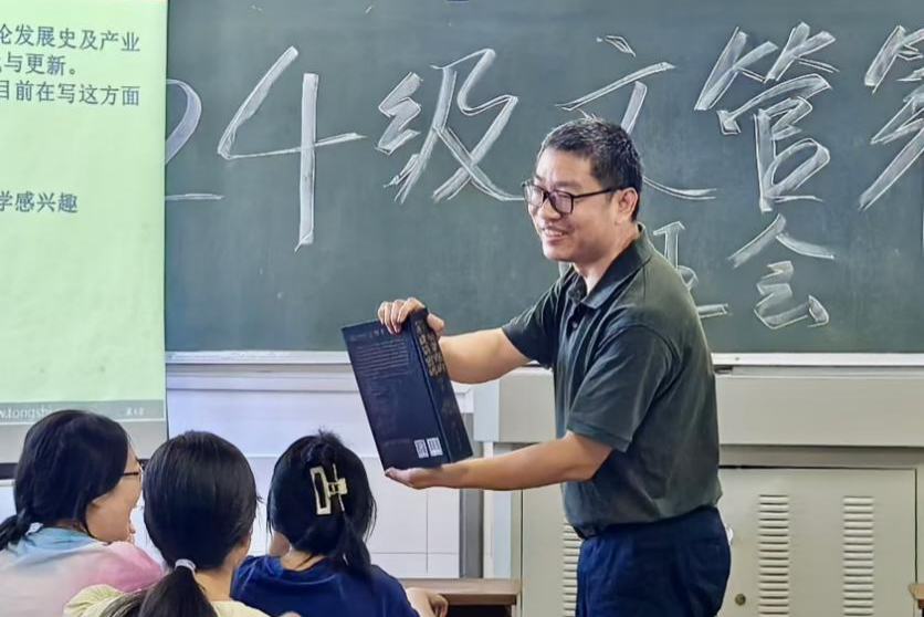 郭辉在2024级历史学专业导航会上指出"历史是人类文明的基本根基所在",介绍了历史师范专业的培养方案及课程设置。他建议同学们广泛阅读、勇于提问,对自己的人生做出清晰规划。