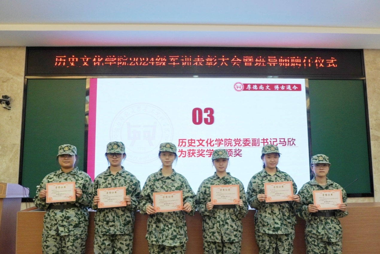 此次表彰大会暨聘任仪式表现了历文院对新生军训成果的重视和赞扬,给新生以重大鼓励,也为军训画上了圆满的句号。