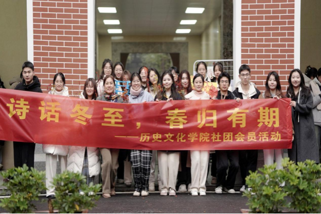 (通讯员袁艺宣向真烨)12月12日下午,“诗话冬至,春归有期”校级社团活动在金沙2004路线js5前坪开展。本次活动由春秋学社主办,食尚协会、觅美工艺社、文物爱好者协会等八家社团协办,党委副书记马欣、学工办主任陈敏、团委书记陈卓君及学工办老师李青、李思文出席,各社团会员参加。