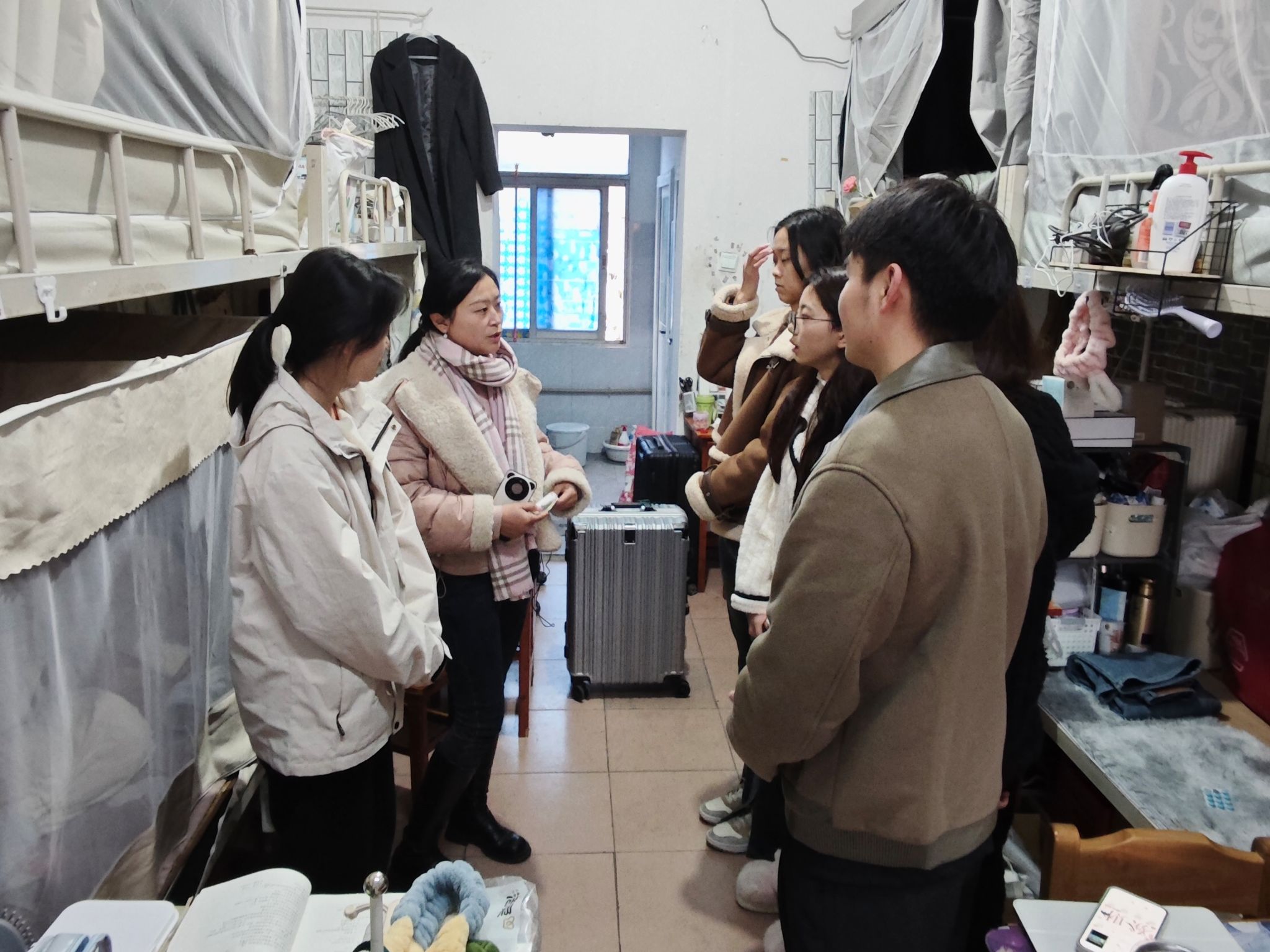 (通讯员唐灿匡艳芬)2月16日下午,历文院党委副书记马欣带领全体学工办老师于天马宿舍区和张公岭宿舍区开展了新学期下寝走访活动。