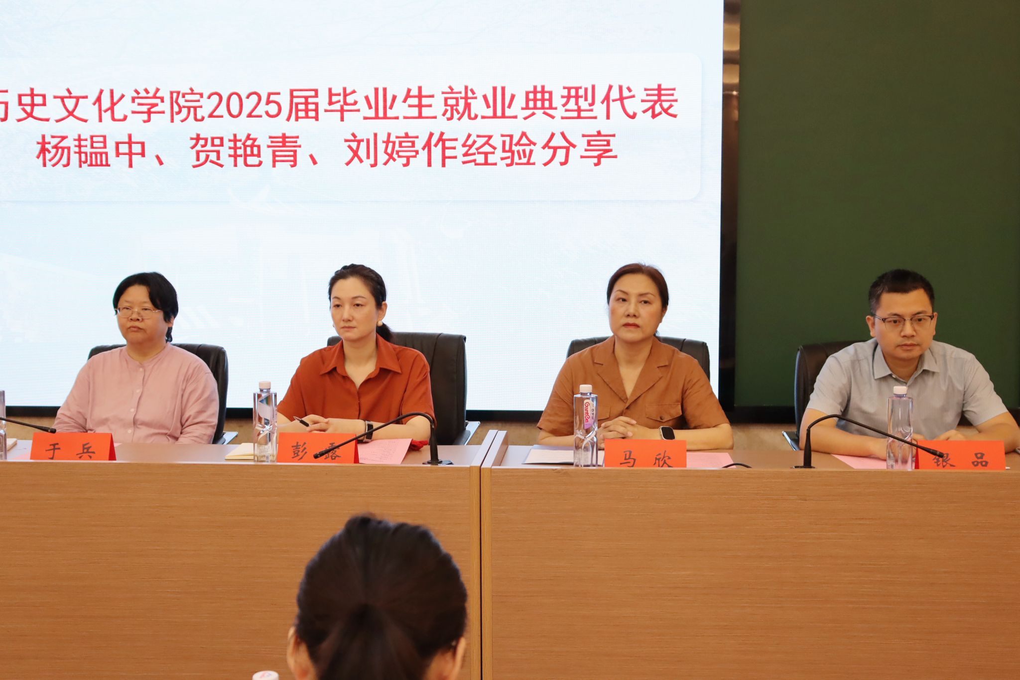 会上,2025届就业典型代表杨韫中、贺艳青、刘婷分享经验。杨韫中围绕公考备考主题,讲述去年九月启动备考、精准选岗,及笔试报课、面试打磨的全流程;贺艳青结合实习,梳理考公考研与就业并行的时间节点,强调关注国考公告、简历“用词凝练”,及面试勇敢沟通的重要性;刘婷聚焦升学,解析择校选专业、梳理考察科目,及研究专业考题的方法。随后,银品结合自身经历,鼓励学生树立目标与任务意识,暑期主动筹备实习、拒绝“躺平”,以积极姿态构建正确就业观,分享务实复习与心态调整的方法;于兵剖析就业形势,指出压力与机遇并存,引导学生挖掘自身优势、匹配合适岗位。最后,彭露作总结,明确学生转变观念、强化就业意识,依据个人情况定目标,以自信主动的态度出击就业市场,为后续就业工作奠基。