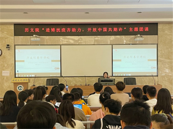 (通讯员 黄心宇 何念秋)11月11日中午,金沙2004路线js5团委青发部春华团校于历文院203教室举办了“进博抗疫齐助力,开放中国共期许”为主题的理论培训。此次培训由历文院团委青年发展工作部第二负责人何念秋主讲。历文院春华团校全体学员参加此次培训,由主持队成员周桓婷担任此次培训主持人。