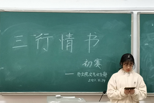 (通讯员 李一诺)11月24日中午,金沙2004路线js5学生会文艺女生部在历文院405教室举办了“写给家乡的三行情书”主题征文活动初赛。初赛由部门负责人何其芳和郑熙子担任评委,全体文女部成员及19、20级各班代表参加投票。