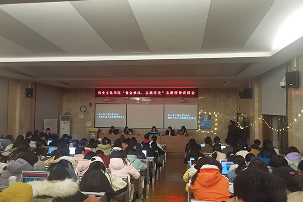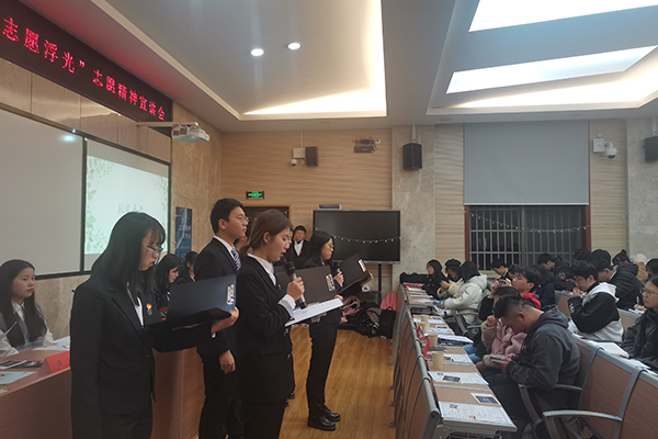 活动开始前,历文院团委工作人员进行了会场布置,给每位到场嘉宾及同学发放宣传单。宣讲会伊始,院团委青工部成员进行宣传成果播放与展示。随后,由许悦,卢小凡,张瑞,戴海燕先后上台讲述志愿故事,宣讲自己心目中的志愿精神。宣讲结束后,活动进入了现场观众提问与分享志愿故事的环节,同时,四位主讲人做出了回答与讲解,以加强同学们对志愿精神更深层次的理解。最后,陈卓君对此次宣讲会进行点评,并给出建议和意见。