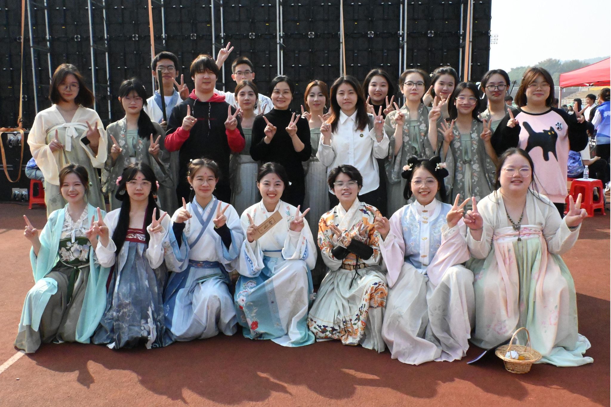 活动伊始,历文院四个社团共同表演古风歌舞剧《棠梨煎雪》,随后各社团分发宣传单、组织趣味活动、派发活动礼品,如春秋学社开展的诗词数独、文物识记、猜成语诗等活动,将多彩的活动形式与历史文化的精神内核相结合,吸引了新老会员的积极参与,展现出历文院学子对历史文化的新理解与新追求。活动期间,院团委书记陈卓君及学工办主任兼学生社团管理服务中心指导老师陈敏前来指导,与现场的各社团理事和新老会员共同参与活动并合影。活动同时,招新工作也在各社团理事的组织下有序进行。