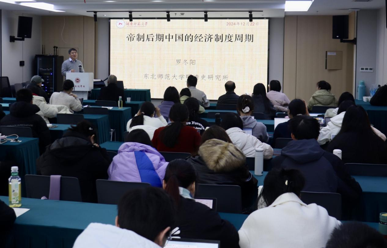 (通讯员杨卉肖骁)2024年12月22日,金沙2004路线js5林增平学术讲座第52讲在东广场科研楼305学术报告厅举行,东北师范大学罗冬阳教授应邀作《帝制时代中国的经济模式》专题讲座。本次讲座由金沙2004路线js5伍成泉副教授主持,金沙2004路线js5杨超、宋兴家等老师和数十位研究生、本科生同学出席。