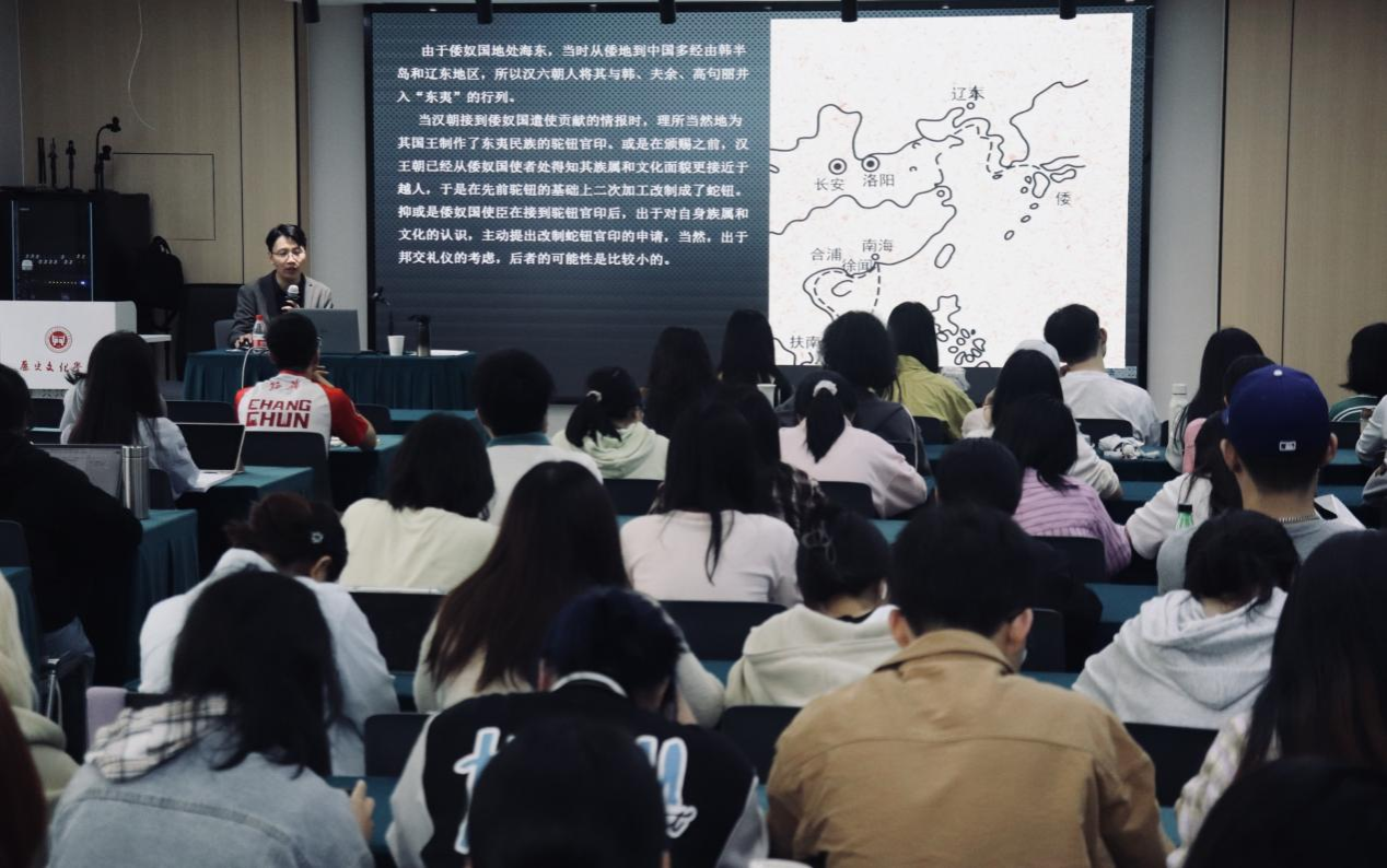 (通讯员肖骁)2025年5月8日,金沙2004路线js5青年学者系列学术讲座第十九讲在东广场科研楼305报告厅举行。金沙2004路线js5朱棒老师担任主讲人,开展《“汉委奴国王”到“伏义将军之印”——基于印章资料的东北亚册封体系考察》专题讲座。金沙2004路线js5百余名师生参与讲座。