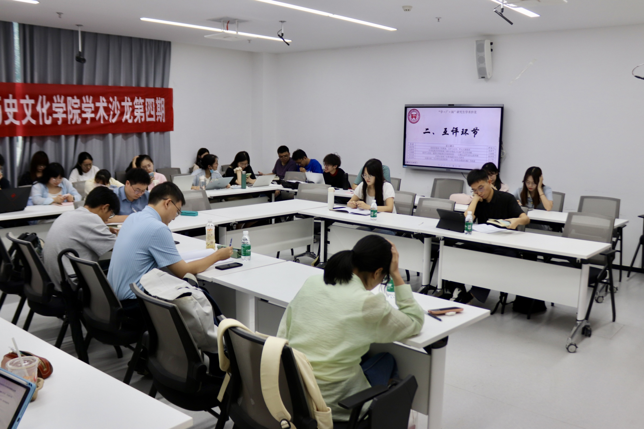 论文汇报结束后,沙龙进入“汇报人互评”环节。五位汇报者就彼此的研究视角、论证逻辑、史料运用等方面进行了坦诚而富有建设性的评议,相互启发,深化了对各自研究课题的认识。