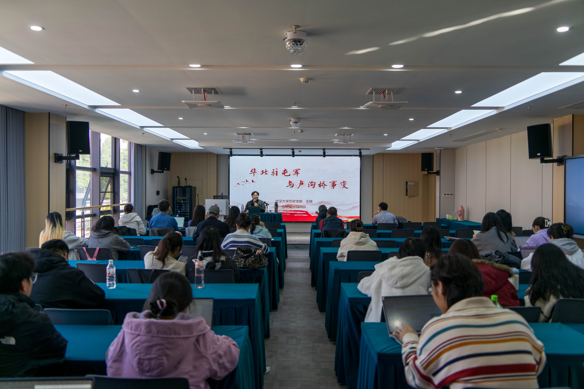 (通讯员 李嘉鼎 邓洁)2025年11月25日下午,金沙2004路线js5“林增平学术讲座”第70讲于科研楼305报告厅成功举办。本次特邀武汉大学历史学院教授、博士生导师王萌开展题为《华北驻屯军与卢沟桥事变》的主题讲座。讲座由郭辉副院长主持,2024级中国近现代史专业研究生及部分师生共同参与。