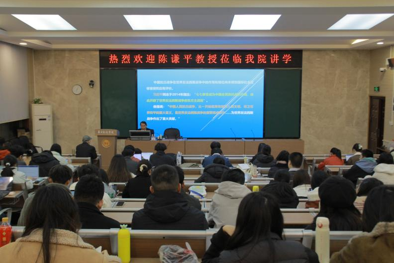 随后,陈教授深入阐述了中国抗战的正义性与独特性。他谈到,日本发动侵华战争的核心目标是称霸亚太地区,而中国自九一八事变后的局部抗战到七七事变后的全面抗战,有效遏制了日本速战速决的战略企图,延阻了日本在亚太地区的侵略扩张。同时,陈教授结合欧洲战场背景,对比分析了德国纳粹党上台后的整军备战与中国局部抗战的发展历程,指出中国在一·二八淞沪抗战、长城抗战等战役中逐步凝聚的抗日力量,为后续全面抗战奠定了基础。从1937年全面抗战爆发至1941年太平洋战争爆发,中国独自抗击日军达4年5个月之久。中国共产党领导的八路军、新四军在敌后建立抗日根据地,钳制大量日军,迫使日本将速决战转为持久战。他列举了第一次长沙会战、百团大战、台儿庄战役、平型关战斗等重要战役,极大消耗了日军的军力与财力,对牵制日本军国主义主力起到关键作用。