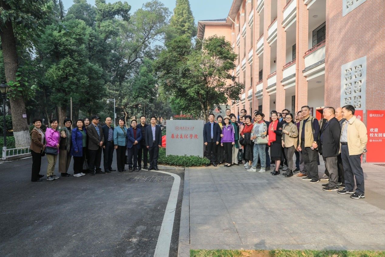 座谈会前,学院院长刘利民和校友代表共同为1980级校友捐赠的院标揭幕。