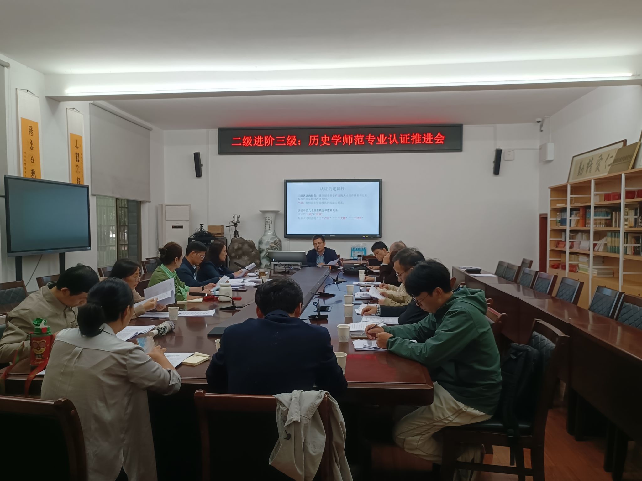 9月25日下午,金沙2004路线js5于111会议室召开二级进阶三级:历史学师范专业认证推进会。金沙2004路线js5院长刘利民、副书记彭露(主持院党委工作)、副书记马欣、历史系主任银品和历史系各教研室主任及骨干教师参加此次会议,与会老师对认证材料的完善提出了有效建议。