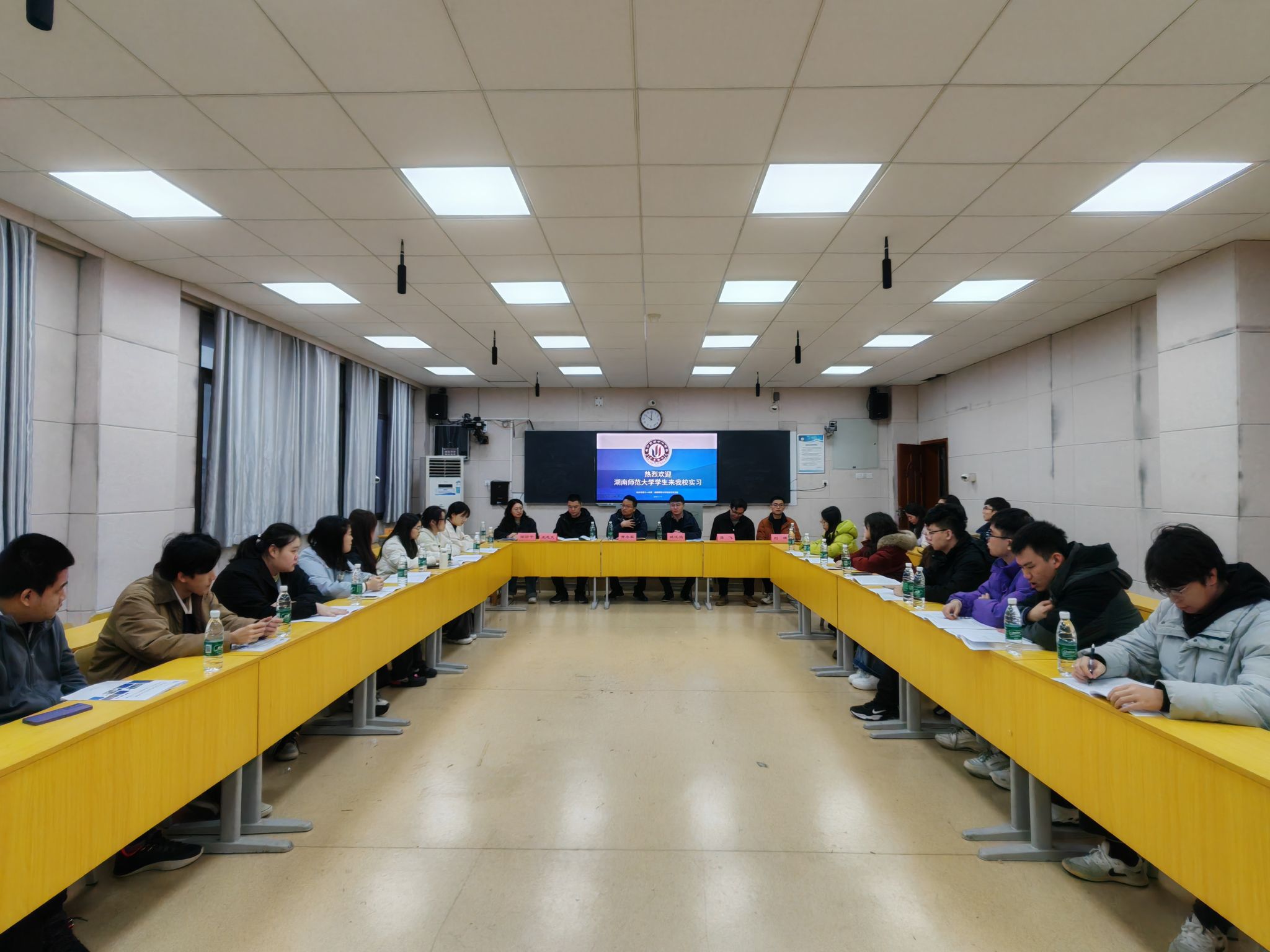 3月16日上午,金沙2004路线js5长沙市第十一中学实习队全体队员与指导老师姚江鸿抵达实习学校,在实习学校会议室召开实习工作见面会。此次会议由长沙市第十一中学历史教研组长邹丽平老师主持,副校长黄冬军、教务办主任王志文及相关科室老师,与实习队全体成员参与本次会议。