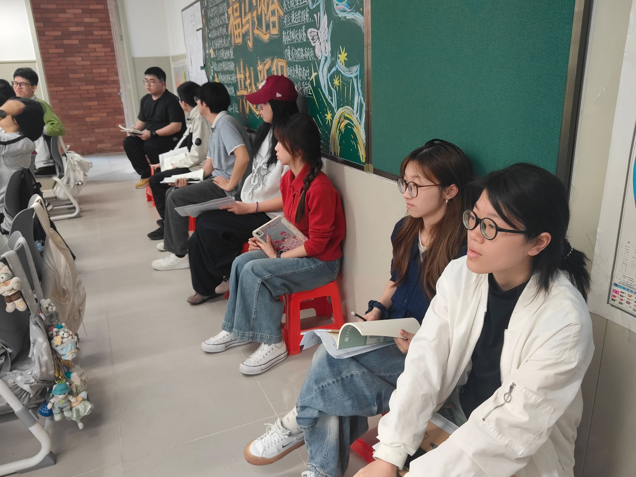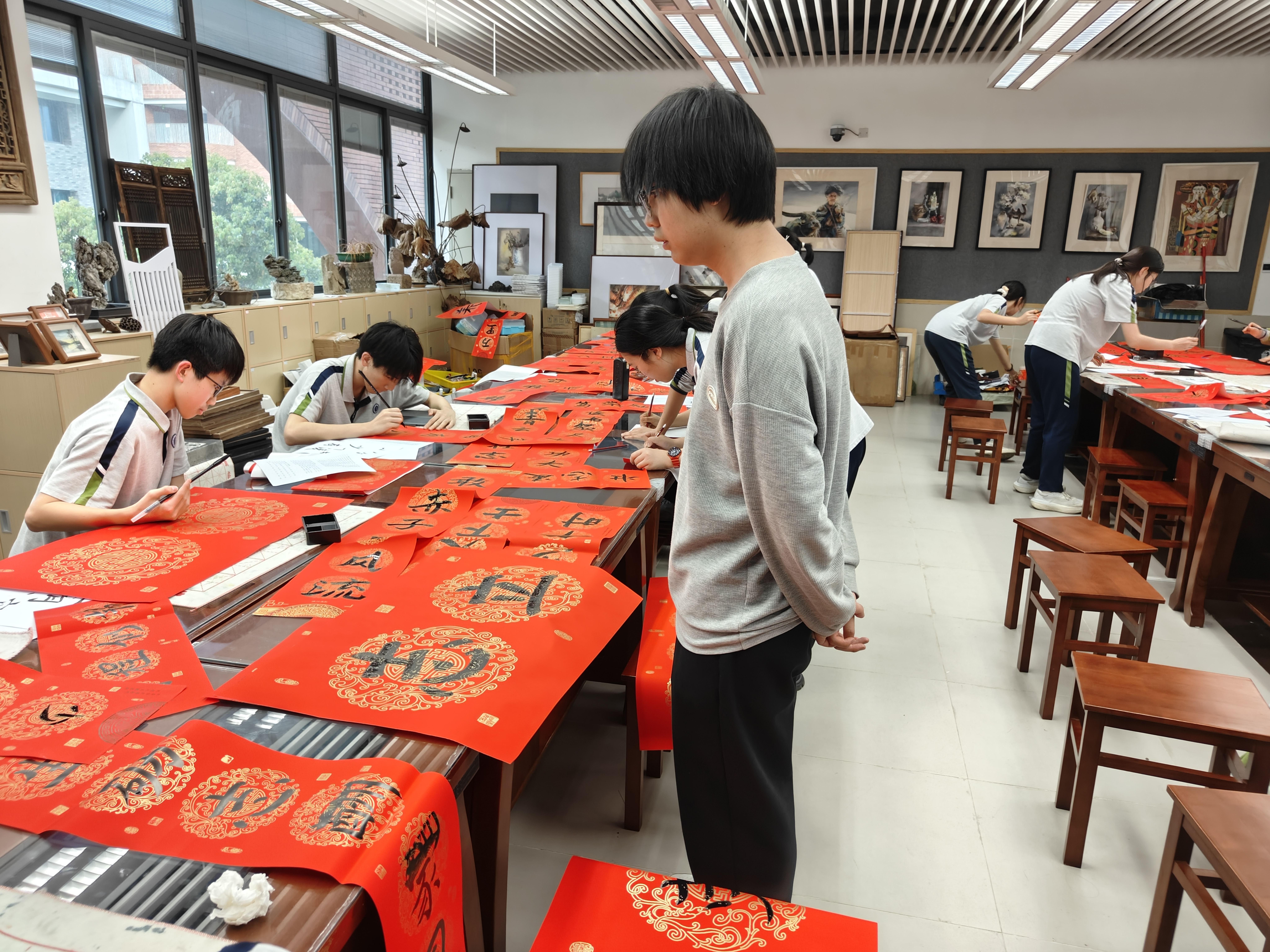 班级管理实践中,全体队员均对接对应班级,全程参与早读、课间操、晚自习、监考、作业批改、卫生监督、劳动实践课程跟班等日常管理工作,耐心解答学生疑问,认真维护班级秩序。同时,队员们积极参与户外远足跟班、实践作业布展、毛笔对联书写大赛组织、“进德班”评选协助等专项活动,全面参与班级建设。在实践中,队员们逐步熟悉不同年级、班情的管理要求,提升了组织协调与沟通能力,对教师的育人职责有了更真切的体会。