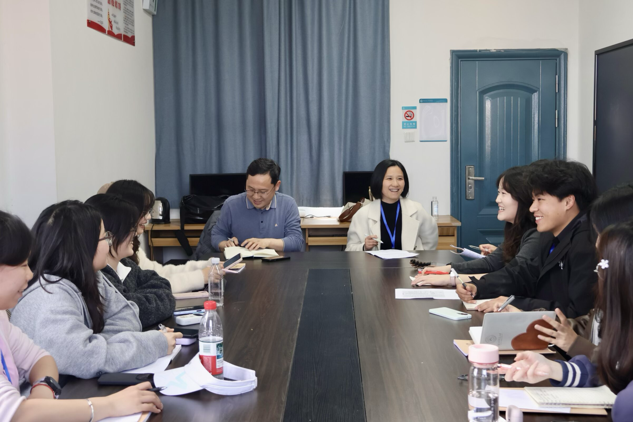 唐建祥随后就教学实践的关键环节给予了具体指导。他提醒队员们,要用心学习优秀教师的“上课节奏”把控——何时快讲、何处慢析,如何动静结合、怎样调节氛围,在节奏的收放之间吸引学生注意力、推动思维走向深处。两位老师的谆谆之言,既指明了后半程实习的方向,也点燃了队员们继续前行的热情。