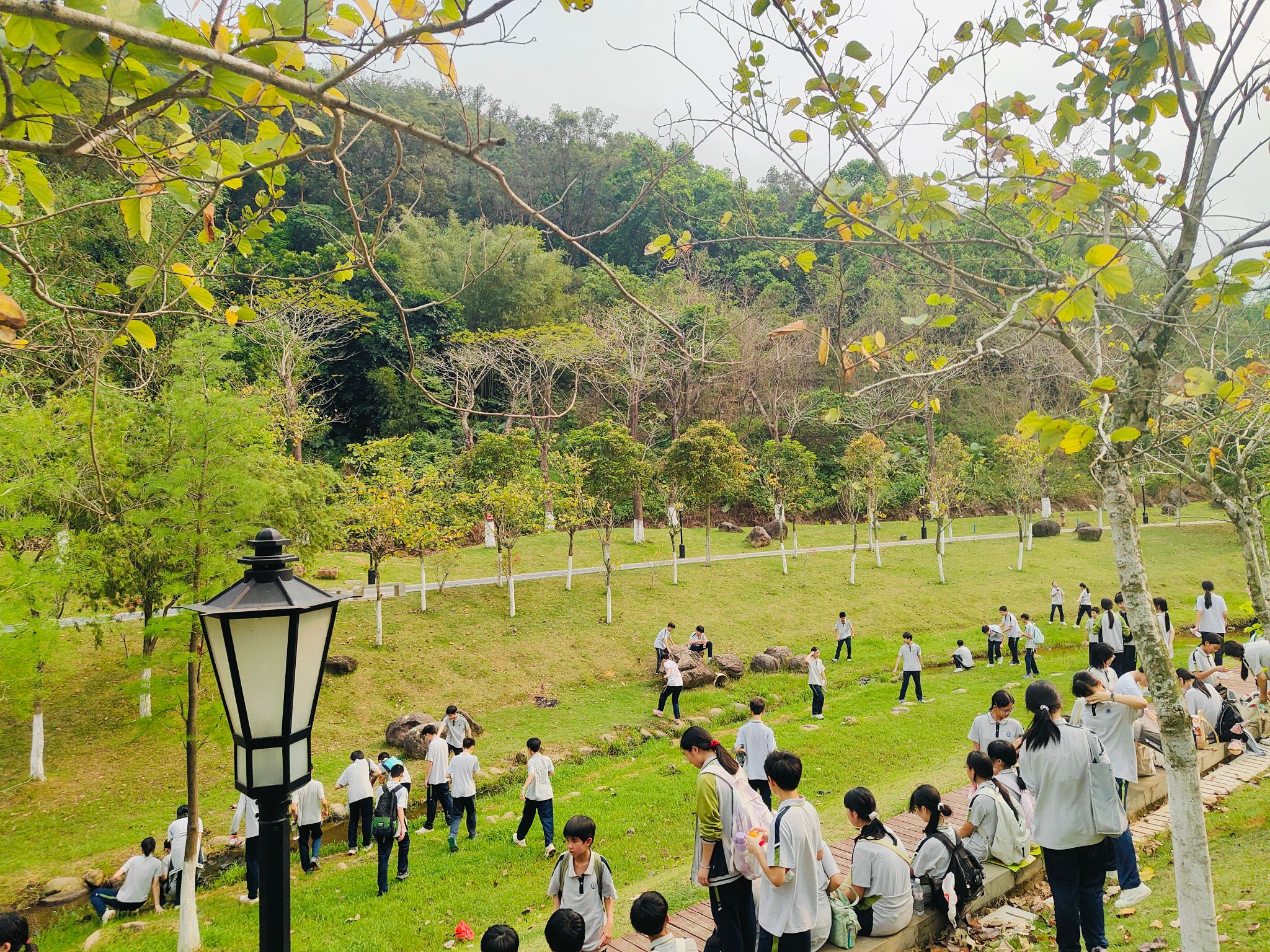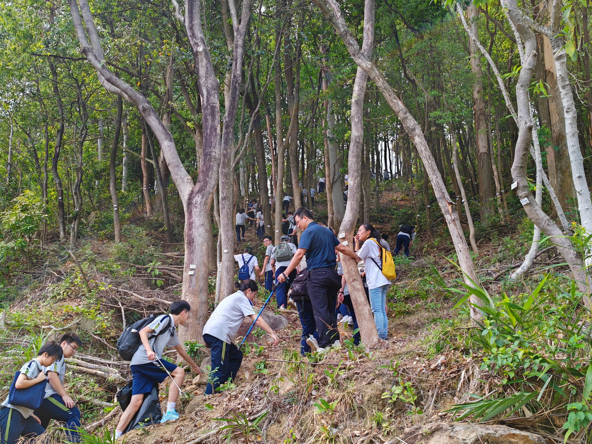 此外,负责初二年级和高二年级的实习队员积极参与校园实践活动,全程协助初二年级踏青寻春·欢乐研“烤”和高二年级“春日寻芳·诗画自然”踏青徒步活动,与学生共同参与徒步、烧烤等环节,增进师生交流,拉近师生距离。