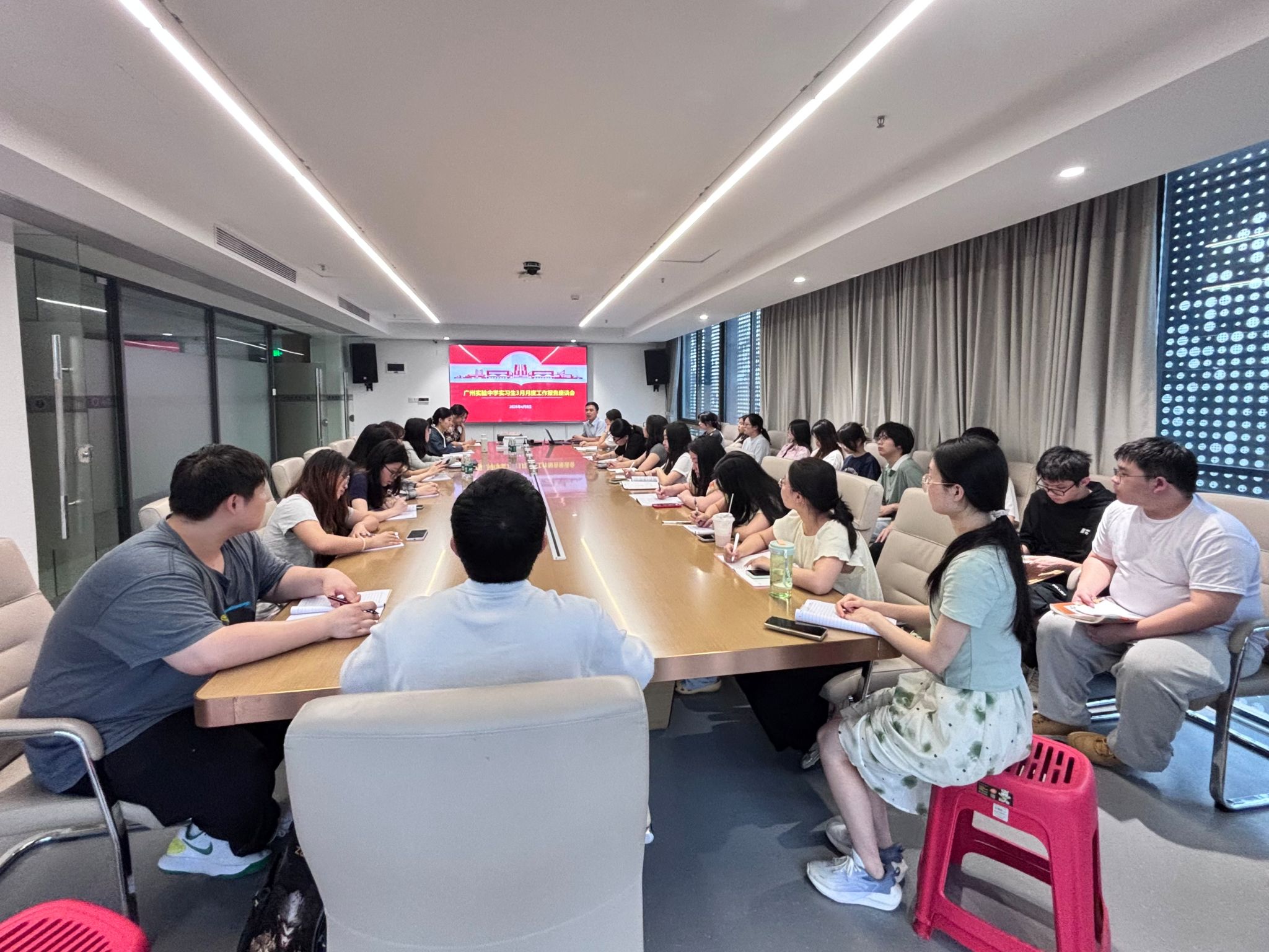 广州实验中学于4月9日召开实习生月底工作座谈会,各实习团队依次汇报前期工作进展,全面总结教学实践、班级管理与活动参与等情况。学校副校长文娟对实习成效给予充分肯定,部署下一阶段实习任务,并深入阐释学校“文科育人、阅读育人”理念,强调语文、历史等人文学科阅读素养培育的重要性,以多元育人路径助力学生全面发展。